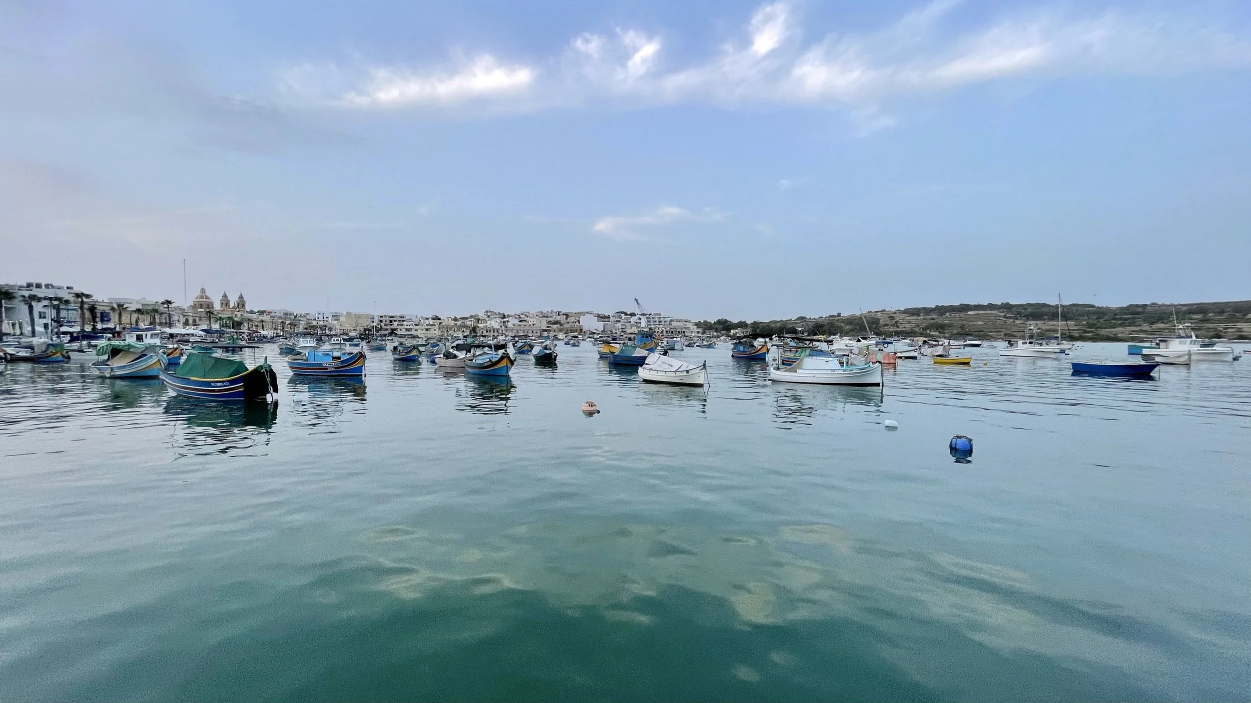 Boats of all sizes docked along the harbour of the small and idyllic ancient fishing village of Marsaxlokk (Marco Ng)